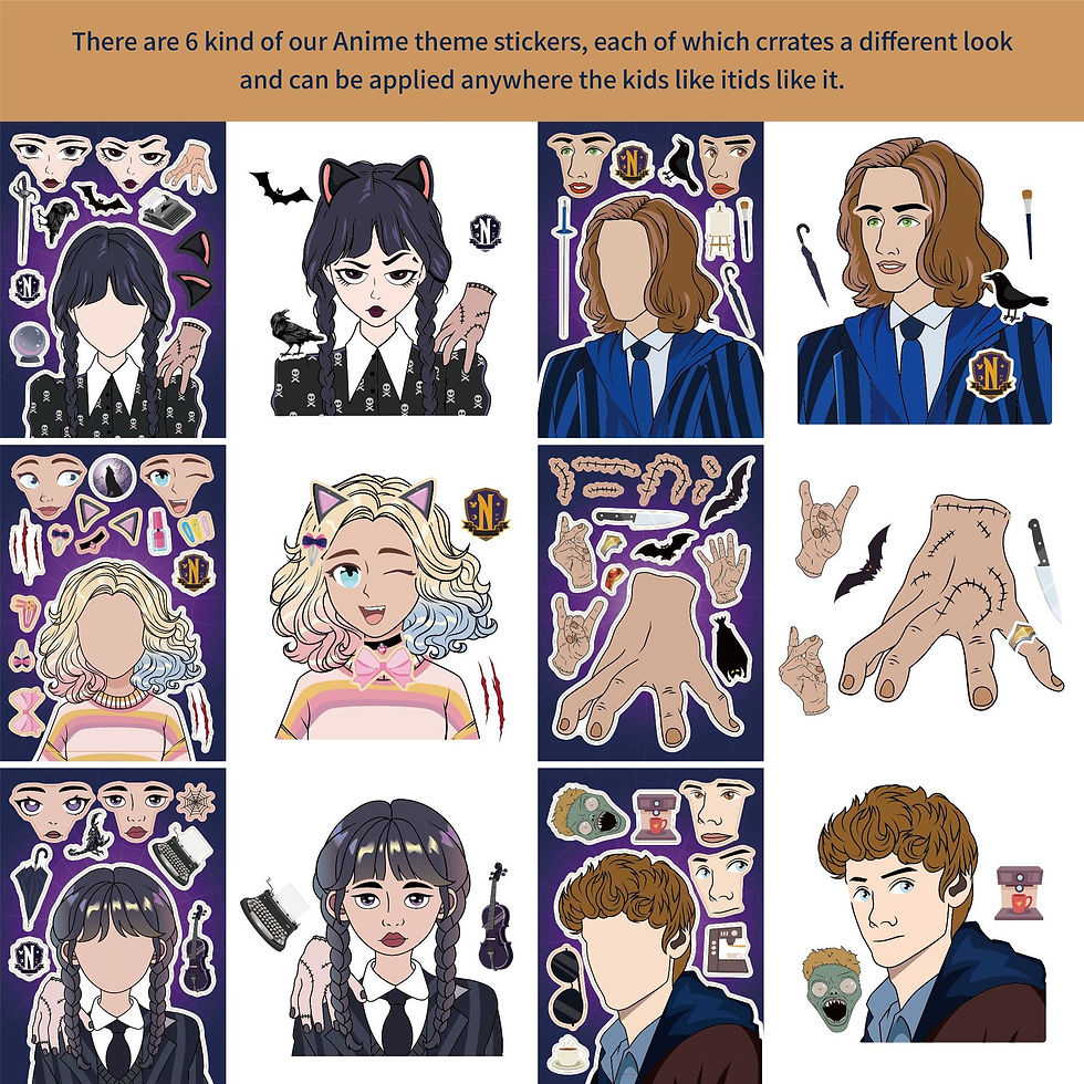 6pcs Wednesday Addams Make a Face Sticker Party Activity Loot Bag Return Gift