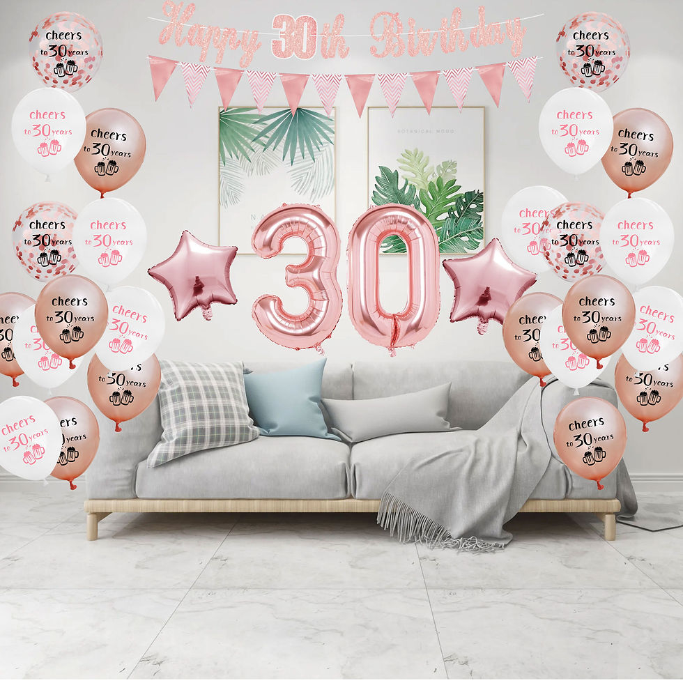 Happy 30th Birthday Party Rose Gold Balloon Set